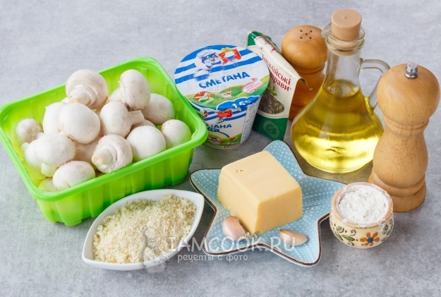 Для приготовления шампиньонов в сметане в духовке вам понадобятся следующие продукты.