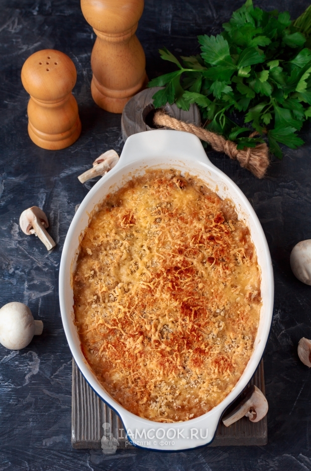 Получается нечто вроде запеканки или жульена в одной большой форме (кому что ближе), но я, признаюсь, когда впервые готовила это блюдо, вдохновлялась классическим гратеном, а точнее сочетанием текстур и вкусов в нем – сочной начинки, сливочного соуса и хрустящей корочки. Мне кажется, в такое сочетание просто невозможно не влюбится. В конце напряженного дня или в расслабленный выходной такое блюдо - просто палочка- выручалочка. Готовит по сути за тебя духовка, продукты доступны круглый год и вкусный результат гарантирован. Обязательно попробуйте!