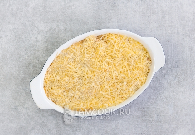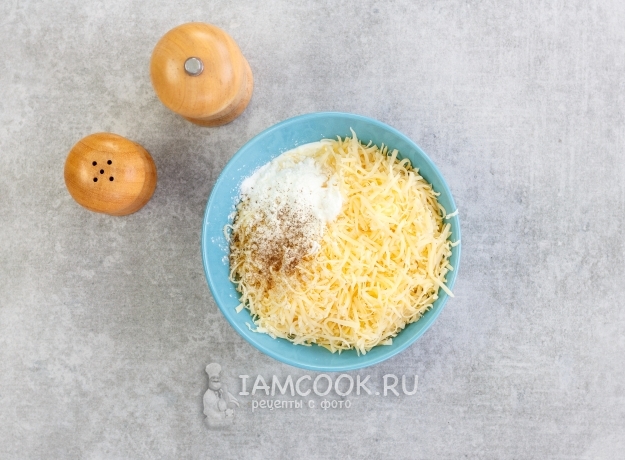 Смешайте сметану, кукурузный крахмал, мелко нарезанный зубчик чеснока и 100 граммов натертого сыра. Попробуйте смесь и добавьте по вкусу соль и молотый черный перец.