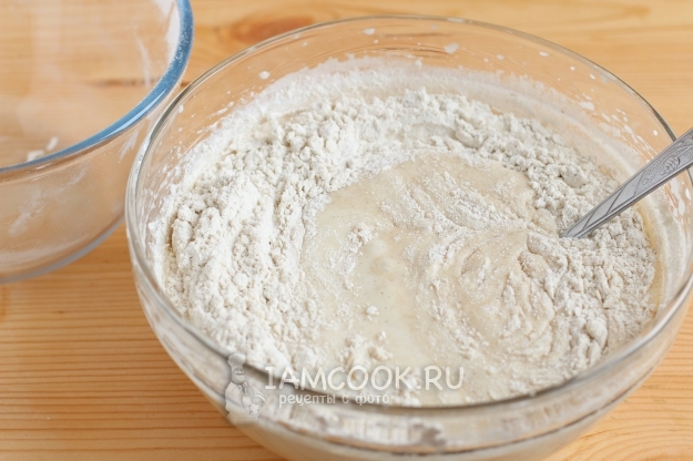 В оставшееся тесто добавим натертую и отжатую от жидкости айву, перемешаем.