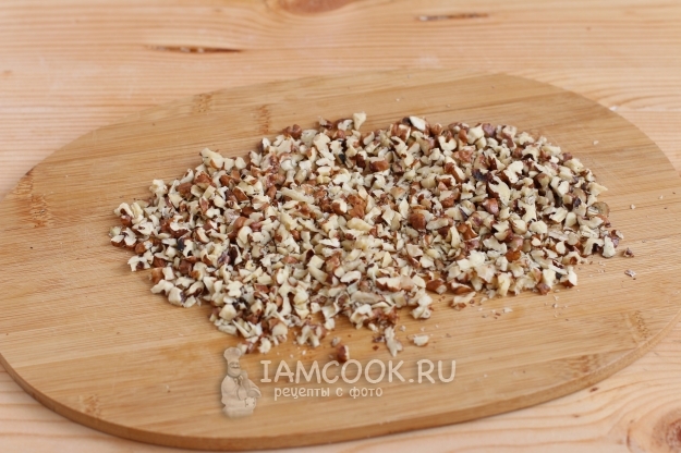 Отделяем от теста третью часть и добавляем в нее измельченные орехи.