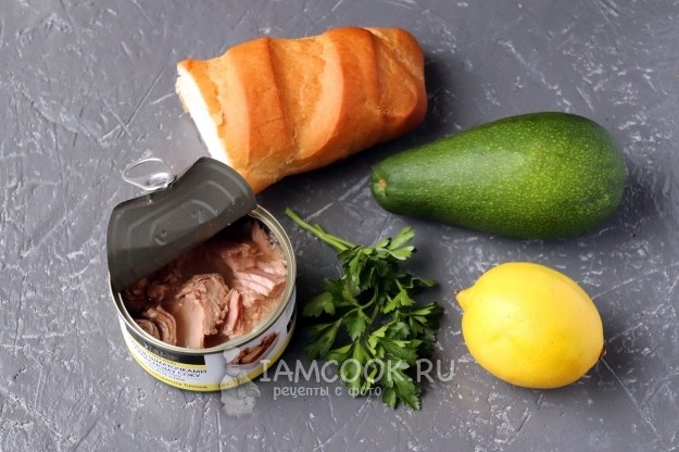 Для приготовления бутербродов с авокадо и тунцом подготовьте продукты по списку к рецепту.