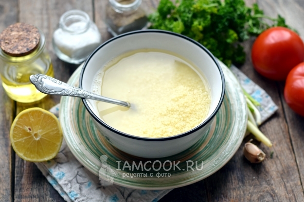 Спустя указанное количество времени вода полностью впитается в кускус, он в свою очередь как следует разбухнет. Варить данную крупу нет необходимости, она и так быстро готовится. После этого кускус полностью остудите, взбейте вилкой.