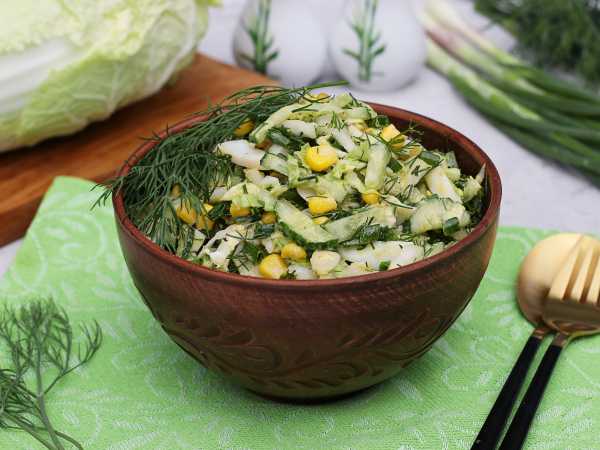 Салат из пекинской капусты, авокадо и огурца готов. Разложите его по красивым креманкам и сразу же подавайте на стол.