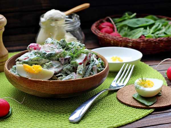 Добавьте в салат измельчённую зелень, растительное масло и соль. Тщательно перемешайте. Зелень подойдёт любая, которая больше всего нравится вам по вкусу и аромату.