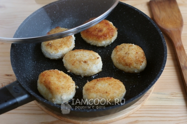 А затем переворачиваем и обжариваем с другой стороны. После обжаривания уменьшим огонь до минимального, накроем крышкой и протомим их еще примерно 5-7 минут, чтобы они дошли до полной готовности.