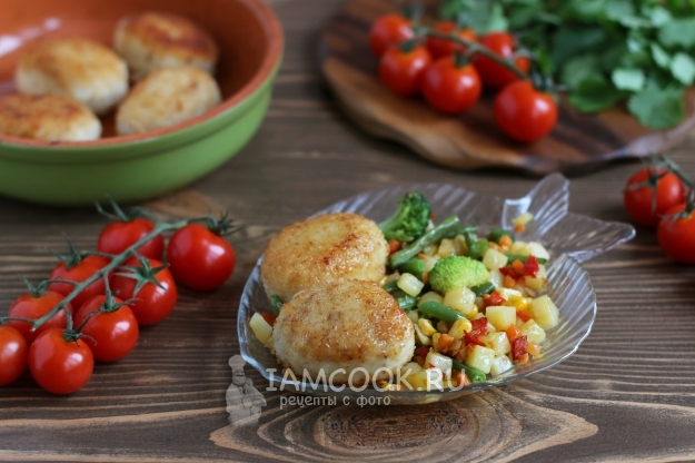 Помимо технологии приготовления рыбных котлет, в технологической карте также указываются варианты гарниров для подачи. К котлетам можно подать картофельное пюре или просто отварной картофель, а также отварные овощи с маслом или овощи, припущенные с маслом. Я выбрала последний вариант.