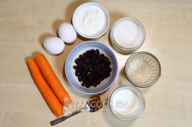 Ингредиенты для сладкой морковно-рисовой запеканки.