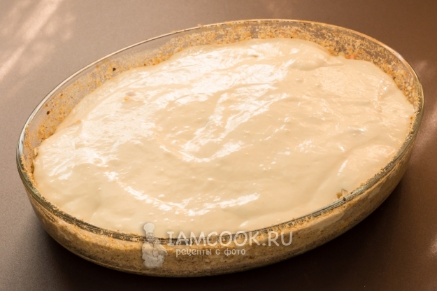Форму для выпечки смазать маслом и присыпать сухарями.