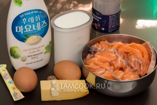Подготовим продукты по списку. Сыр берите любой достаточно твердый. Рыбу нарежьте пластинами.