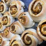 Затем острым ножом разрезаем рулет на кусочки длиной 4 см.