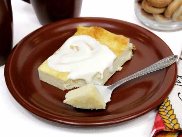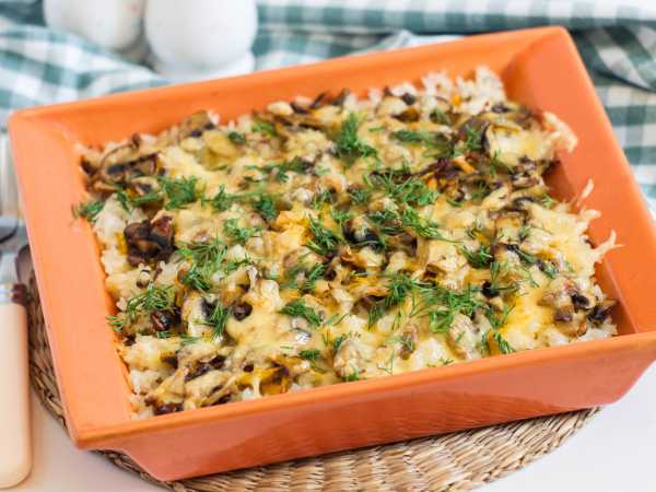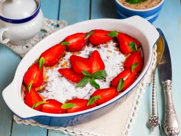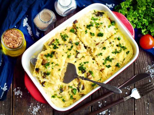 Отправляем форму в хорошо разогретую духовку на 15 минут. Температура выпечки – не менее 240°С. Как только на поверхности образуется золотистая корочка – запеканка готова!