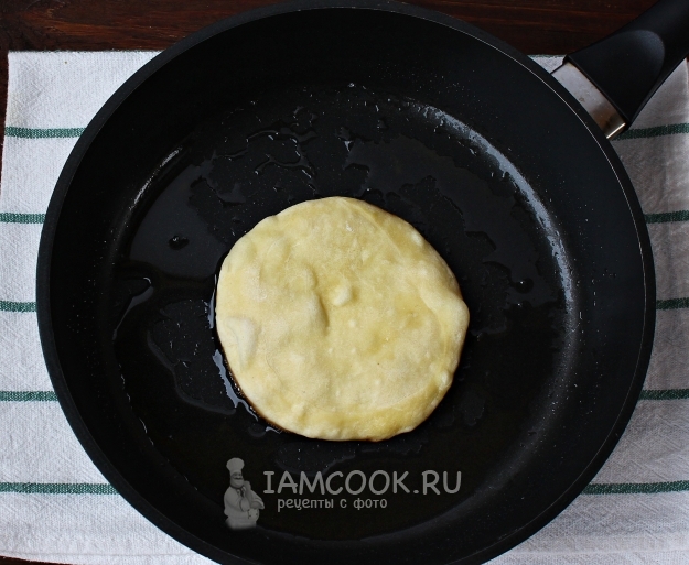 В сковороду наливаем небольшое количество масла, хорошо прогреваем, кладем лепешки и жарим на умеренном огне, под крышкой, с обеих сторон до зарумянивания. Готовые лепешки складываем стопочкой и сразу накрываем крышкой.