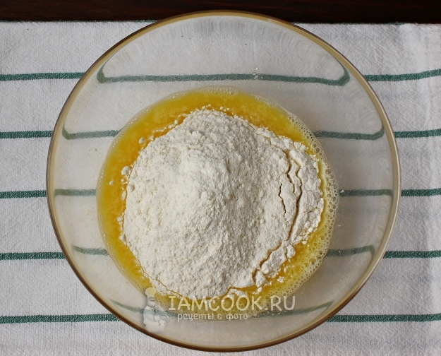 Порциями добавляем муку. Замешиваем мягкое, немного липкое тесто.