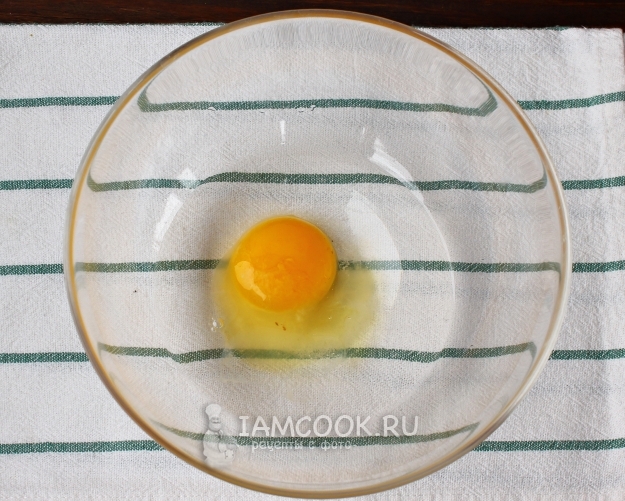В миску вливаем воду, добавляем яйцо и соль, перемешиваем.