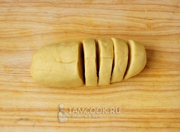 Делим тесто на одинаковые кусочки. Размер зависит от желаемого размера будущих лепешек.