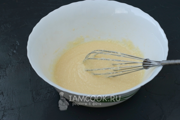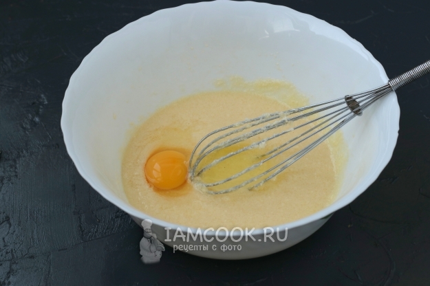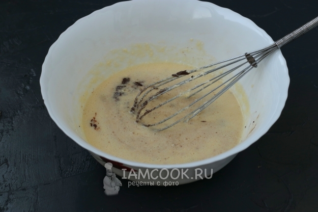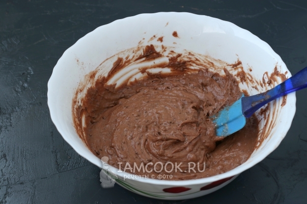 Шоколад растопить и немного охладить, добавить его в тесто и перемешать.