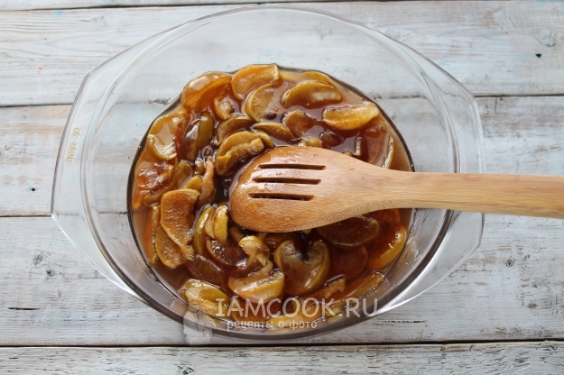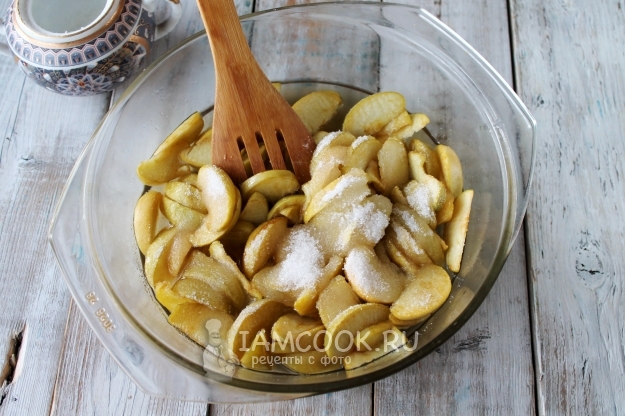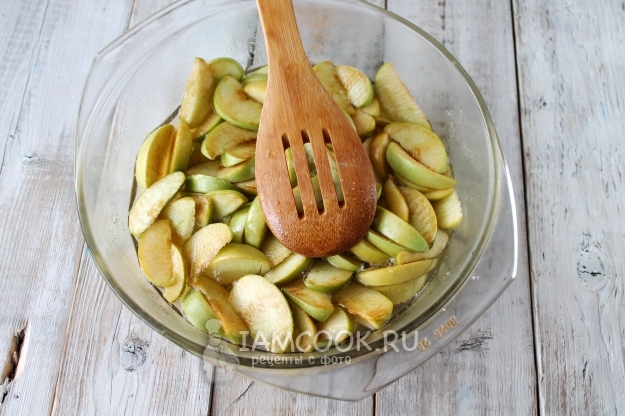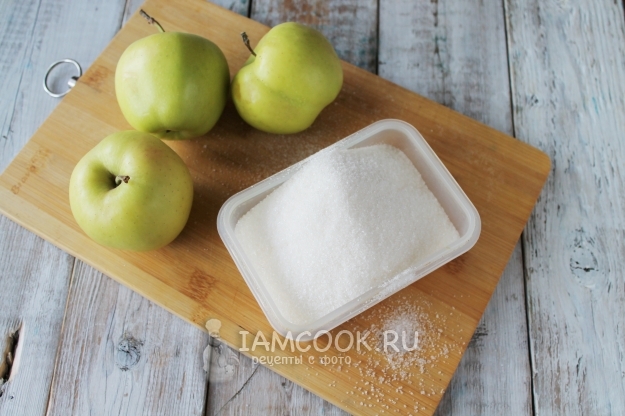 Нарежьте яблоки дольками, удаляя при этом сердцевину. Сложите дольки в кастрюлю и пересыпьте половиной нормы сахара. Оставьте в прохладном месте на ночь.