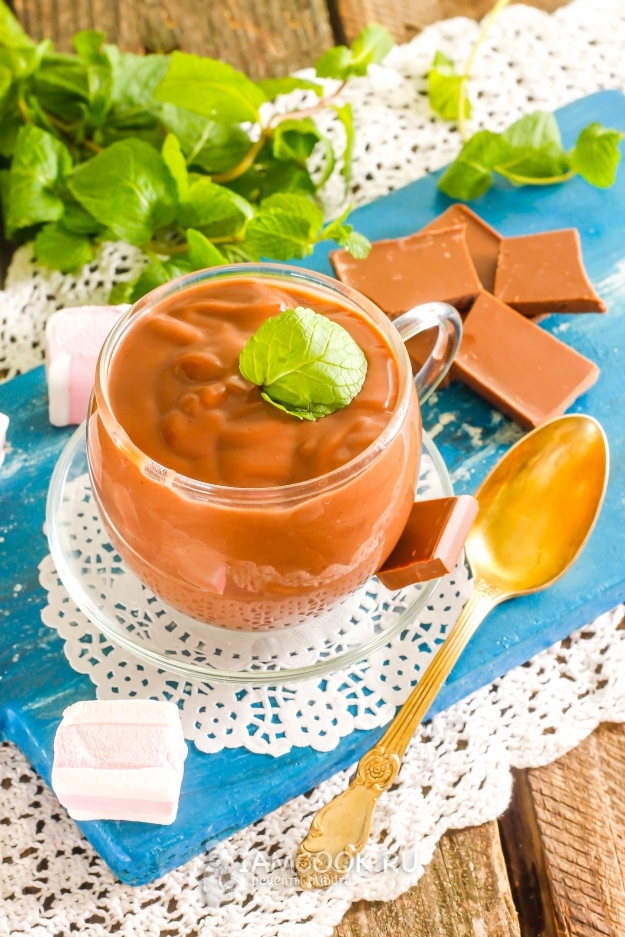 Разлейте домашний густой горячий шоколад в чашки, сразу же подавая на десерт. При остывании напиток еще больше загустеет!