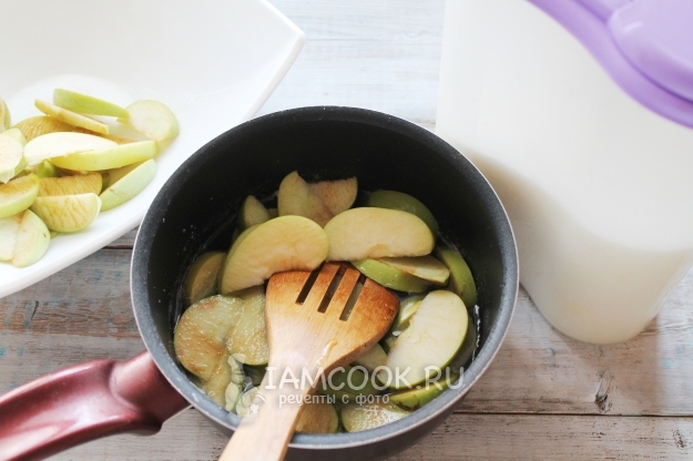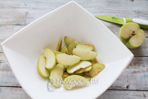 Яблоки нарезаем дольками, это легко делать, двигаясь по кругу, обрезая сердцевину.