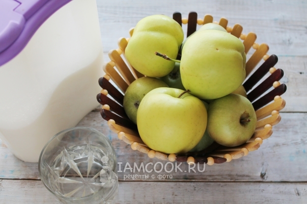Для приготовления прозрачного варенья из антоновки дольками возьмите яблоки, сахар и воду.