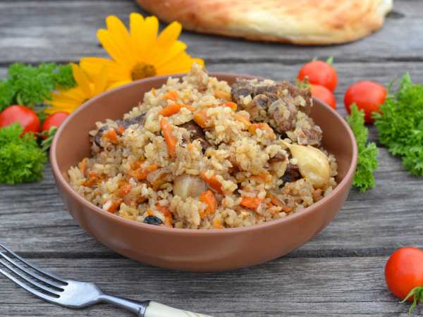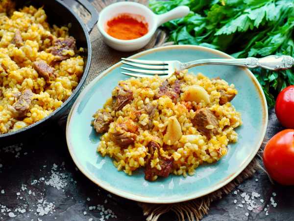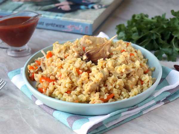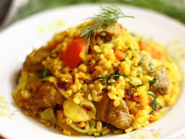 Для приготовления плова из булгура со свининой в казане возьмите продукты по списку.