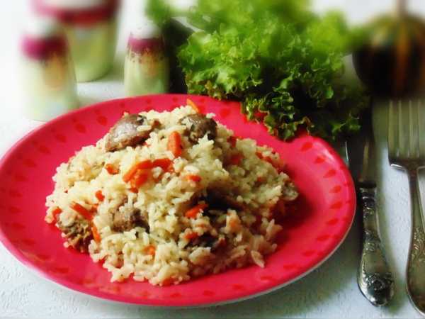 Заливаем двумя стаканами мясного бульона или воды. Солим, перчим, кипятим, уменьшаем огонь и готовим до полного испарения влаги (примерно 20-30 минут).