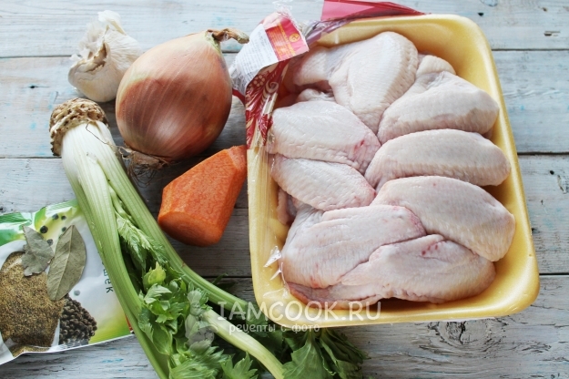Сегодня будем готовить холодец из куриных крылышек. Возьмите продукты по списку.