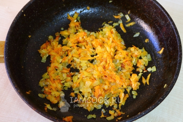 Томим овощи на сковороде с растительным маслом до мягкости. Можно немного поджарить компоненты.