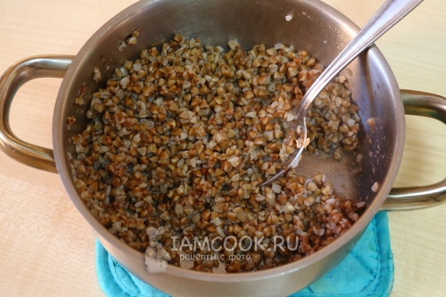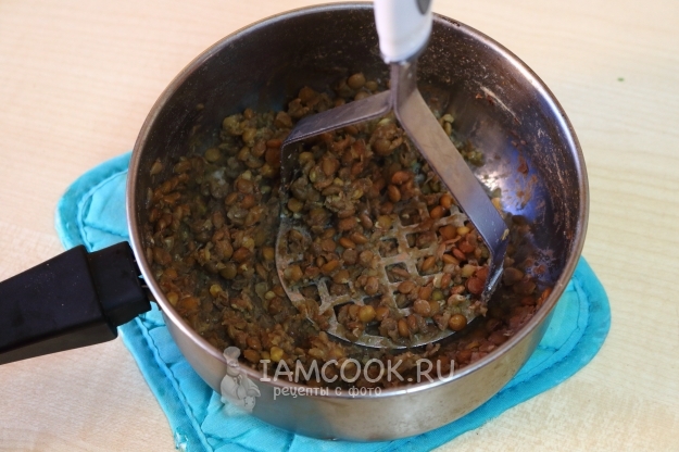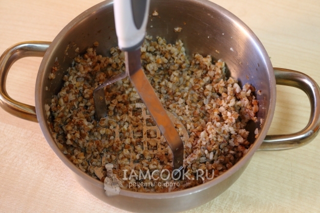 Готовую гречку разминаем толкушкой либо пробиваем блендером.