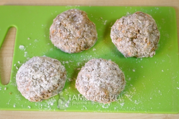 Лепим из получившейся массы котлетки желаемой формы и размера. Обваливаем изделия в муке либо панировочных сухарях.