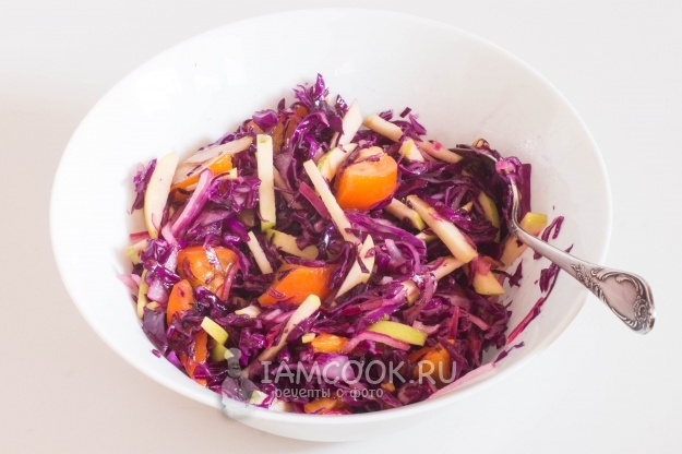 Добавьте растительное масло и соль по вкусу (не забудьте, краснокочанная капуста уже с солью!!!).