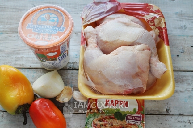 Продукты для приготовления фрикасе из курицы с болгарским перцем подготовьте по списку.