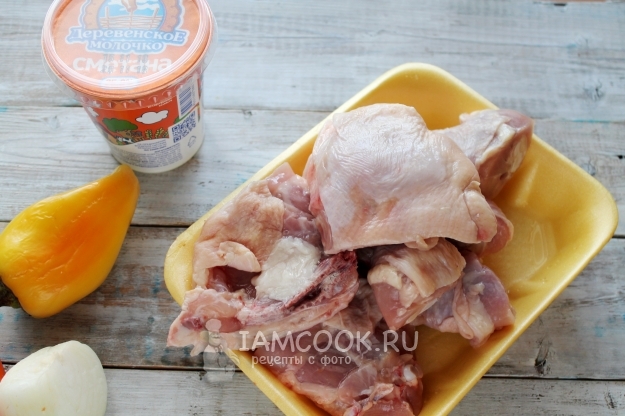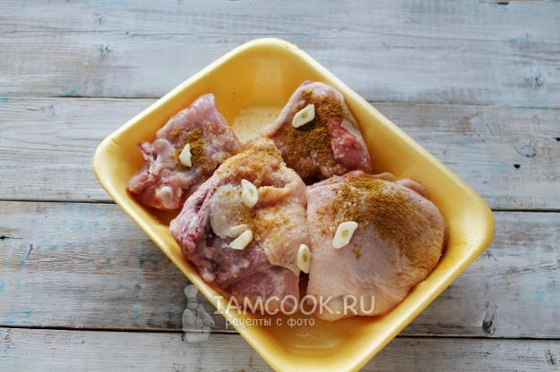 В данном случае возьмем курицу, вернее ее окорочка без ножек. Крупные окорочка можно порубить на кусочки, небольшие оставить целыми.