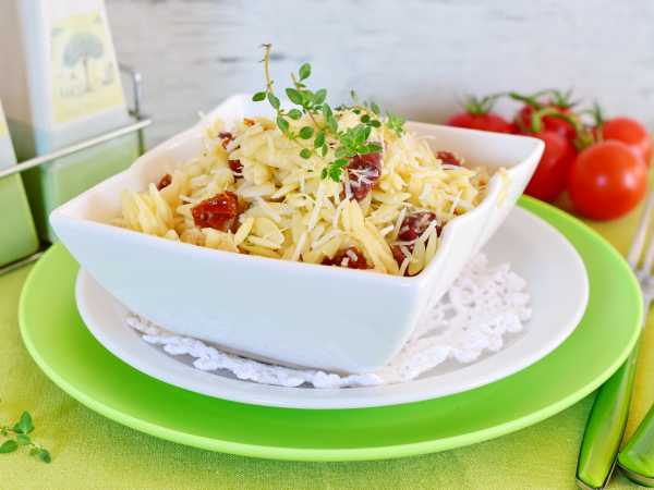 Слегка расшевелите салат, сверху оформите его дополнительно вяленой помидоркой и небольшими кусочками сыра.