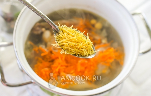 Примерно в это же время всыпьте и вермишель или другие виды макарон.