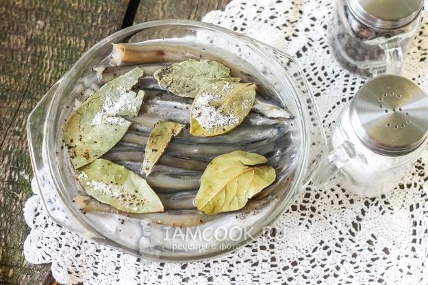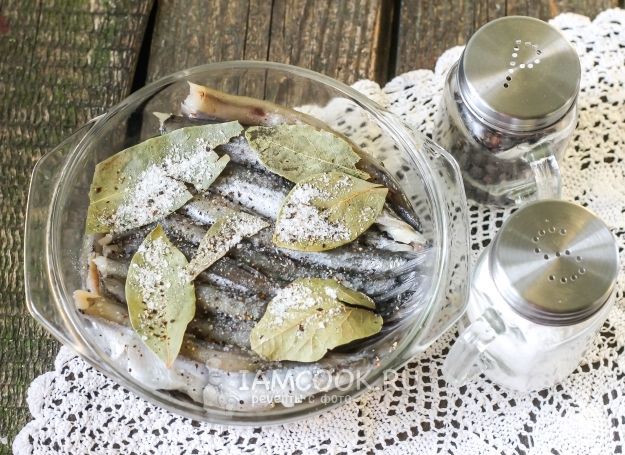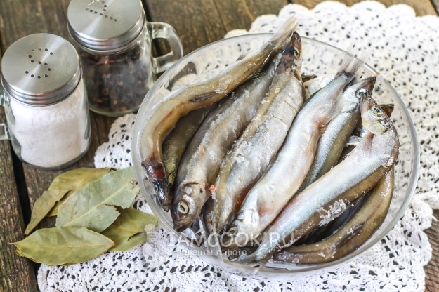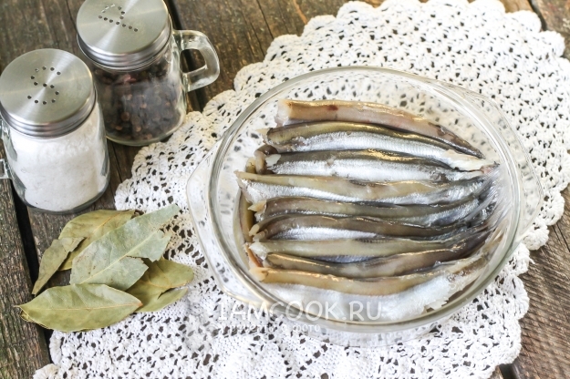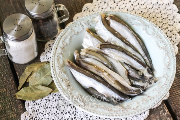 Размороженную мойву очистите, отрывая голову и удаляя внутренности, затем вспорите каждой рыбке брюшко, счистите черную пленку и удалите хребет. Удалите и плавники сверху и снизу, оставляя лишь хвостики - за них удобно держать рыбок при дегустации. Промойте очищенные тушки в воде.