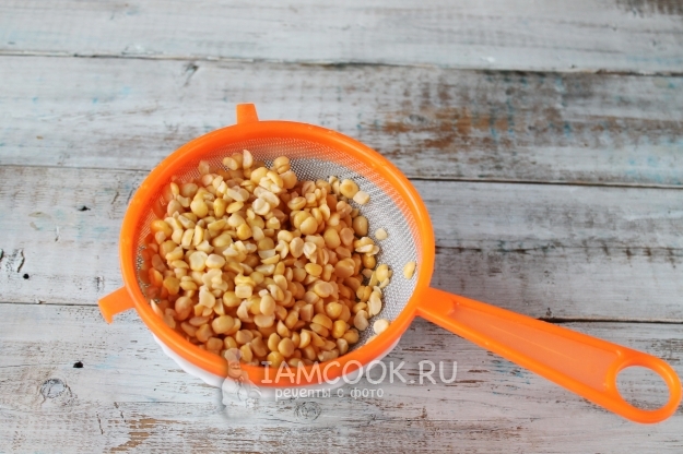 Я люблю, чтобы в супе горох практически превратился в пюре, кое-кто использует для этого добавление соды. Но я предпочитаю ее не добавлять. Просто заранее замачиваю горох (это тоже классика жанра). Замачивание пригодится в дальнейшем - промывая замоченный горох, мы избавляемся от компонентов, вызывающих бурление кишечника впоследствии. Не зря же гороховый суп получил народное название "музыкальный".
