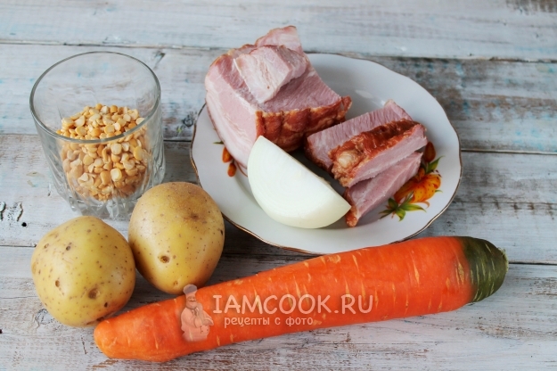 Итак, начинаем готовить гороховый суп с копченостями по классическому рецепту. Возьмите продукты по списку.