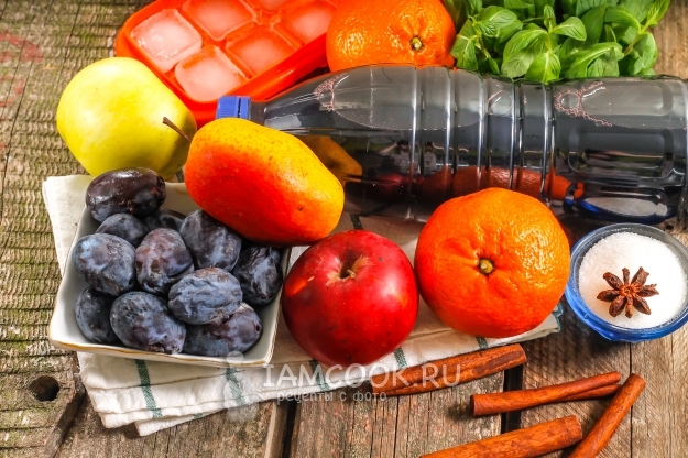 Промойте одно яблоко и грушу в воде, разрежьте на четыре части и удалите семена, нарежьте ломтиками и высыпьте нарезку в кувшин. Можно создавать напиток и в кастрюле.