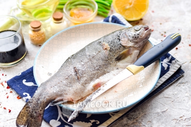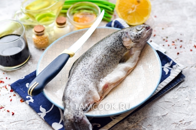 Подготовить все компоненты по списку. Форель выбрать небольшую – 300-350 граммов.