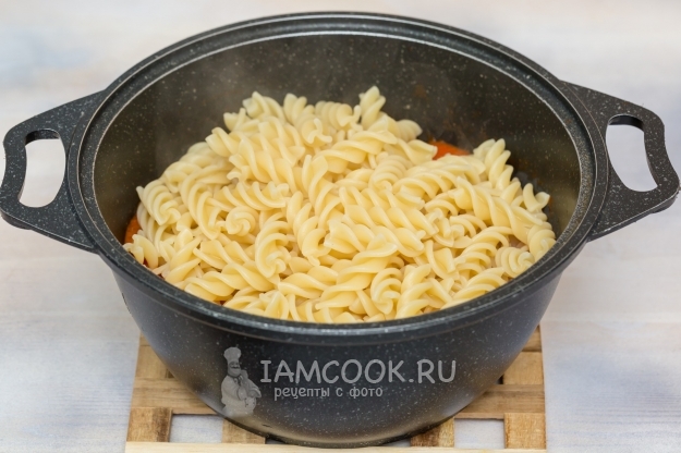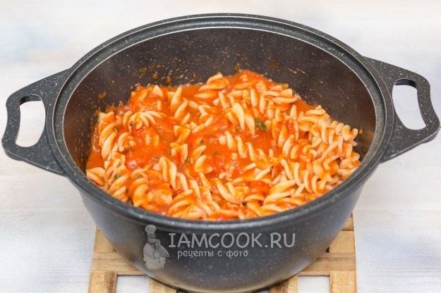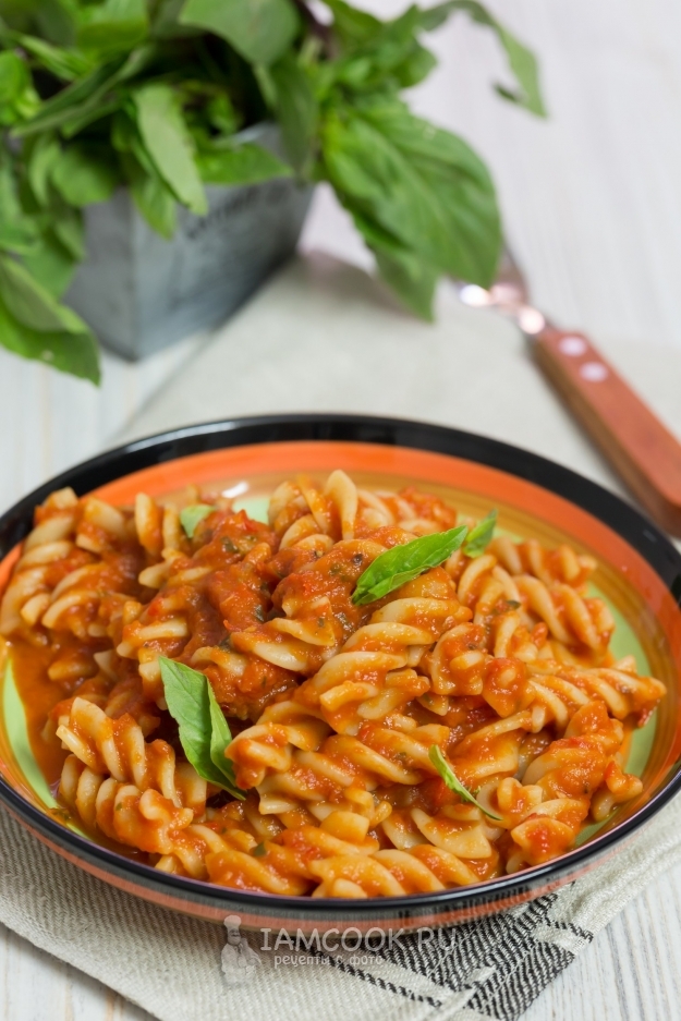 Макаронные изделия лучше взять такие, за которые бы соус "цеплялся": фузилли, пенне, ригатони, диталини. Можно взять букатини.