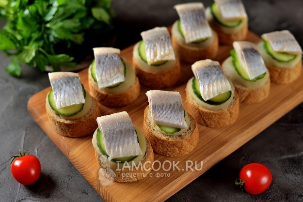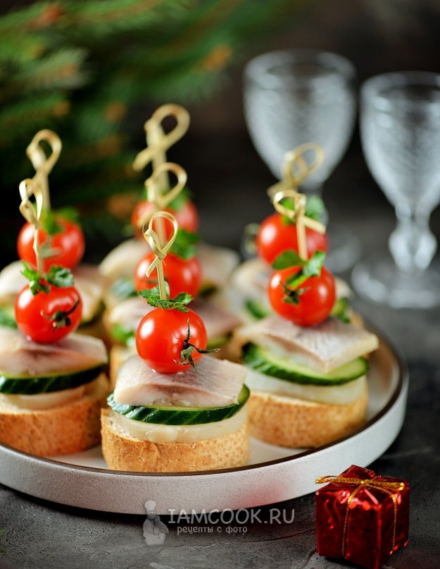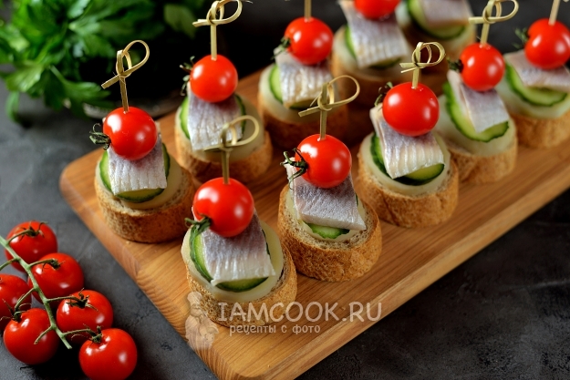 Канапе с селедкой и помидорами готовы, приятного!