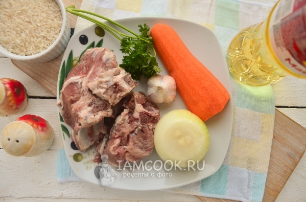 Подготовим все необходимые продукты для приготовления рассыпчатого плова в мультиварке. Овощи можно очистить и помыть, отмерить нужное количество риса, разморозить и помыть мясо.