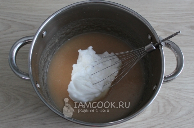 Порциями вмешайте белки в яблочное пюре и взбейте.