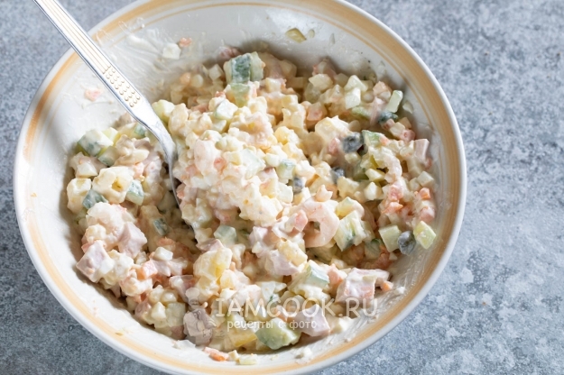 Если дать Оливьешке настояться хотя бы полчасика, это сделает его только вкуснее!