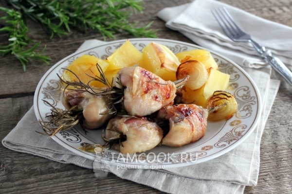 Как вариант, можно удалить из голеней кость, насадить их на веточки розмарина и потом так запечь или пожарить. Для удаления кости надрежьте сначала кожу на кости, затем мясо около среза по суставу и снимите филе с кожей, как чулок.