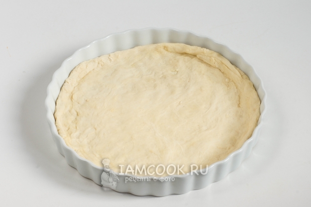 Обомните тесто, сформируйте круглый пласт - лепешку. Мне жаль сиропа, который растекается при выпечке сицилийской лепешки с виноградом, поэтому я готовлю это блюдо в форме, предварительно смазав всю поверхность маслом. Сформируйте небольшие бортики из теста.