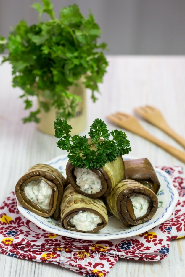 Вне сезона рулетики из баклажанов с творогом можно приготовить и из замороженных баклажанов, предварительно их разморозив.