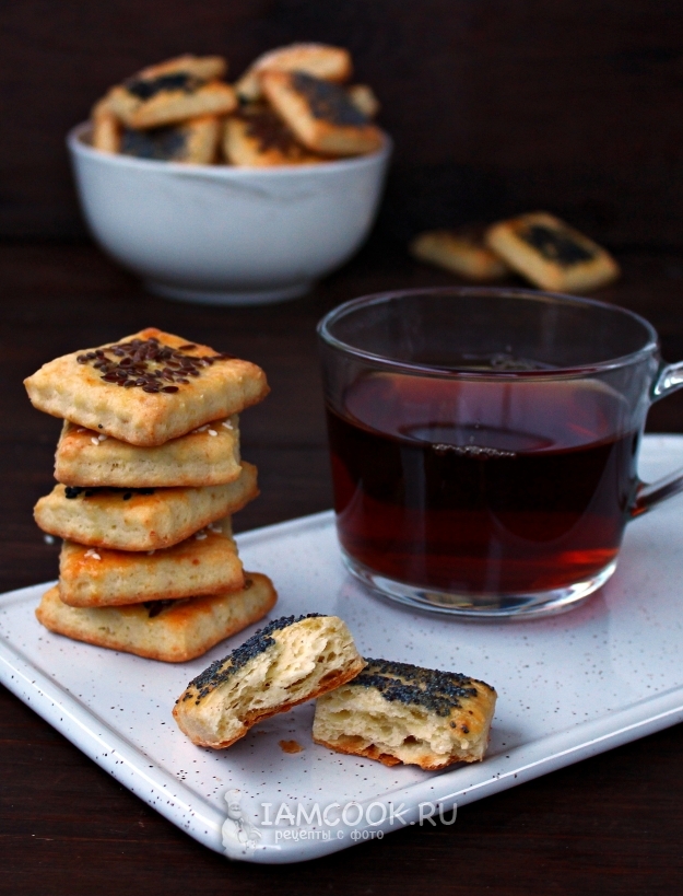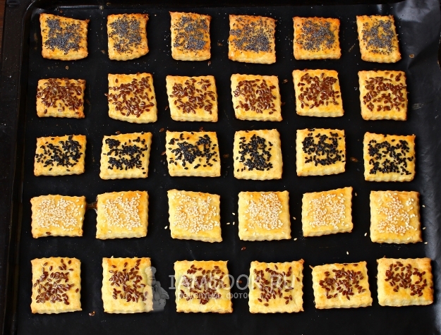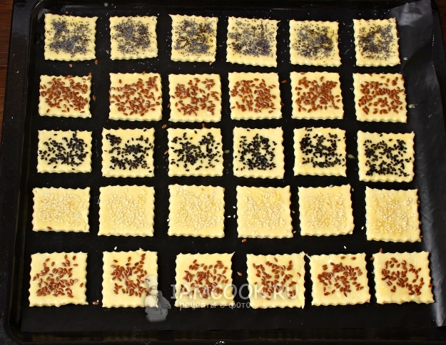 Посыпки для печенья можно использовать любые: кунжут, семена льна, мак, тмин, паприку, кумин, подсолнечные или тыквенные семечки - выбирайте на свой вкус. Какую бы форму печенья и вид посыпки вы ни выбрали, в любом случае получится очень вкусное печенье.